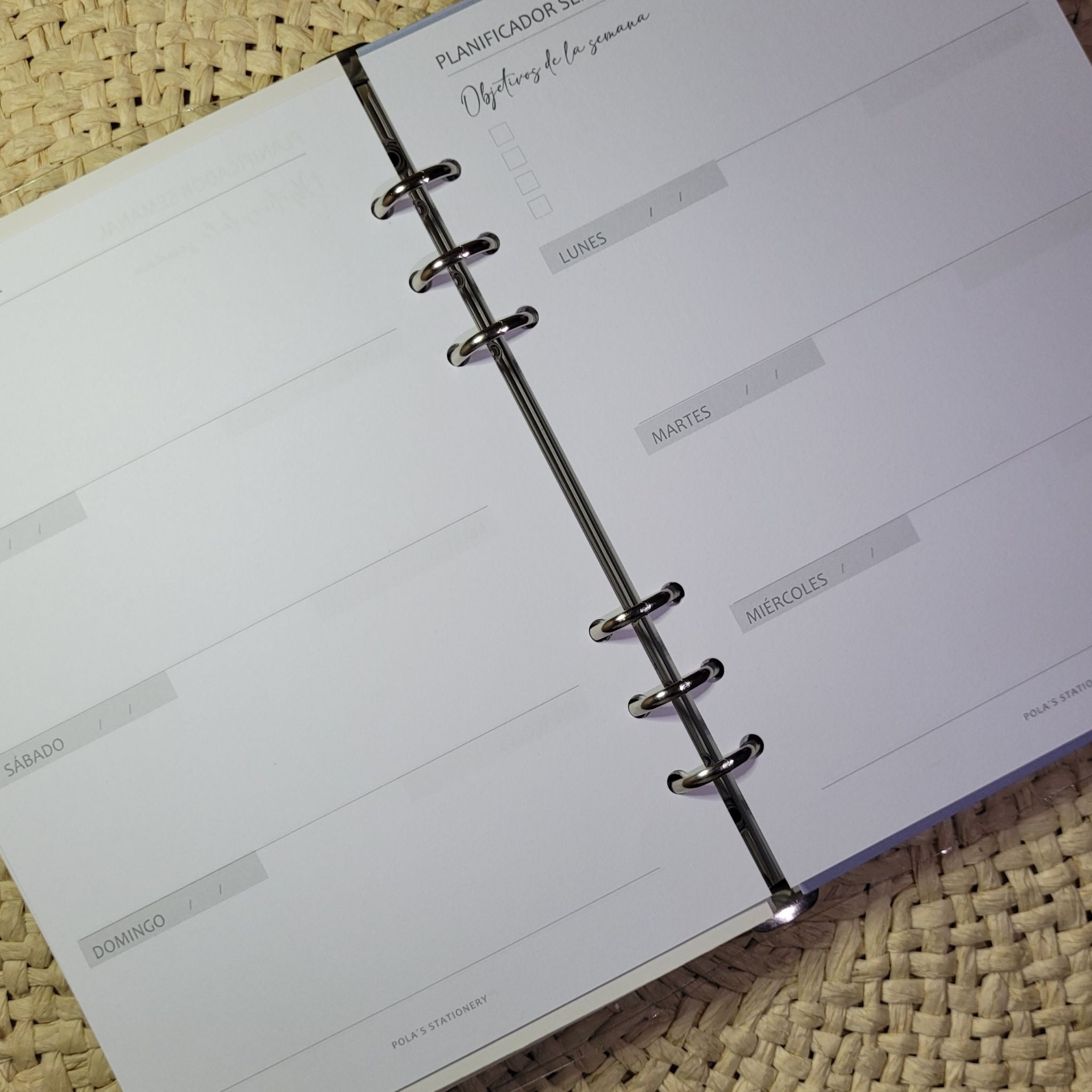🙇🏻♀️ Es flexible. Arma el Binder de acuerdo a tus necesidades. Puedes escoger las secciones de acuerdo a tus necesidades. Tenemos refills para planear tus meses, semanas, días, hojas para notas rayadas, punteadas, cuadriculadas, hojas de listas, etc.