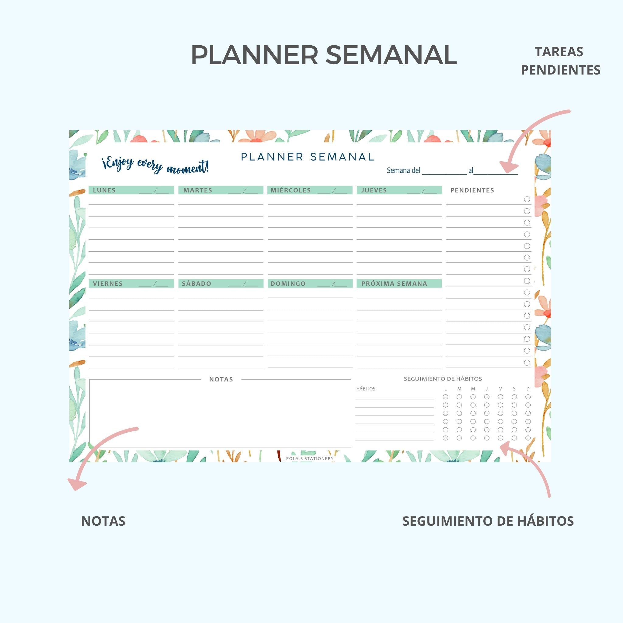 📅📑 Este lindo PLANNER SEMANAL te permitirá mantener en orden todas tus actividades de la semana. Es atemporal, sin fechas. Puedes empezar a usarlo en cualquier momento del año y también solo cuando lo necesites.