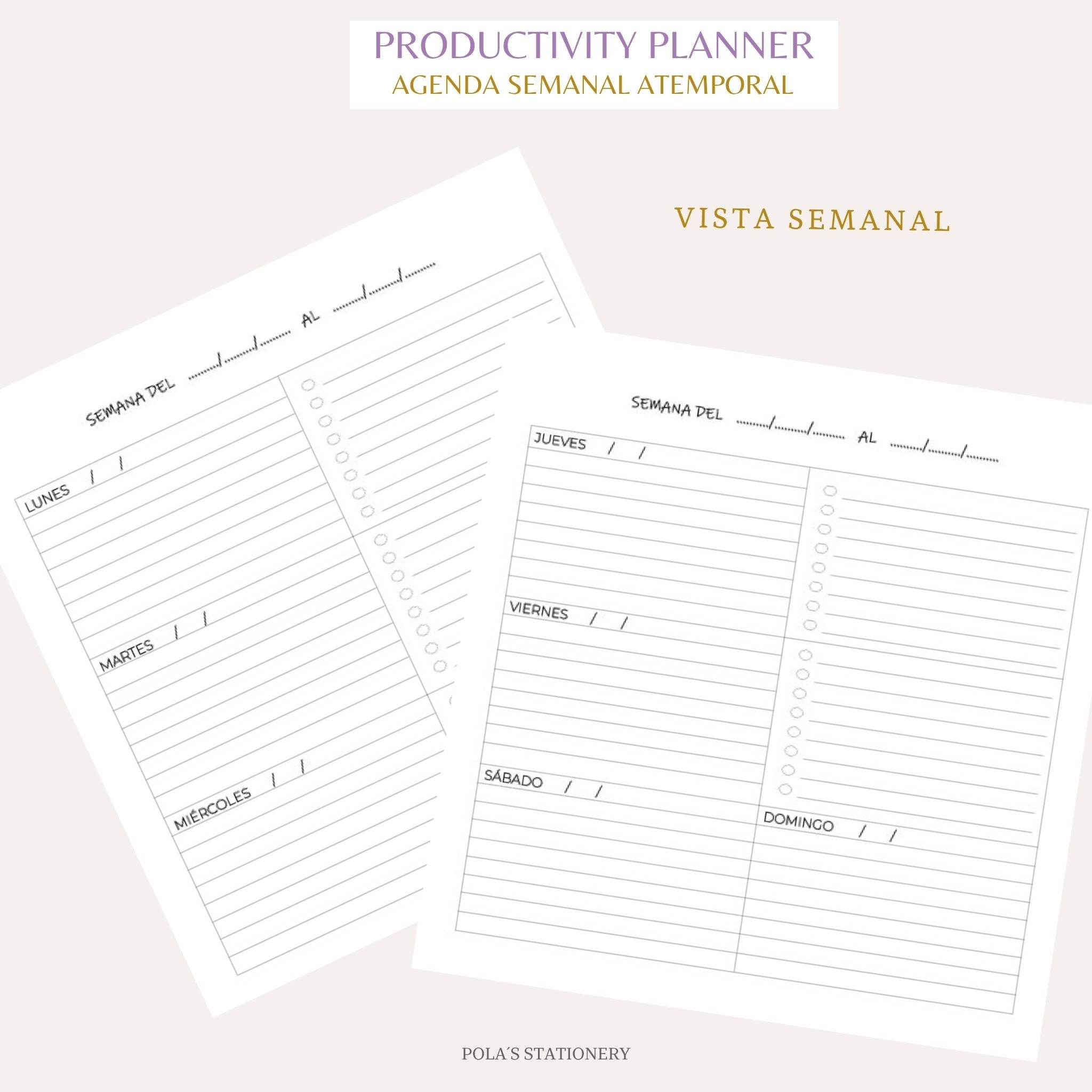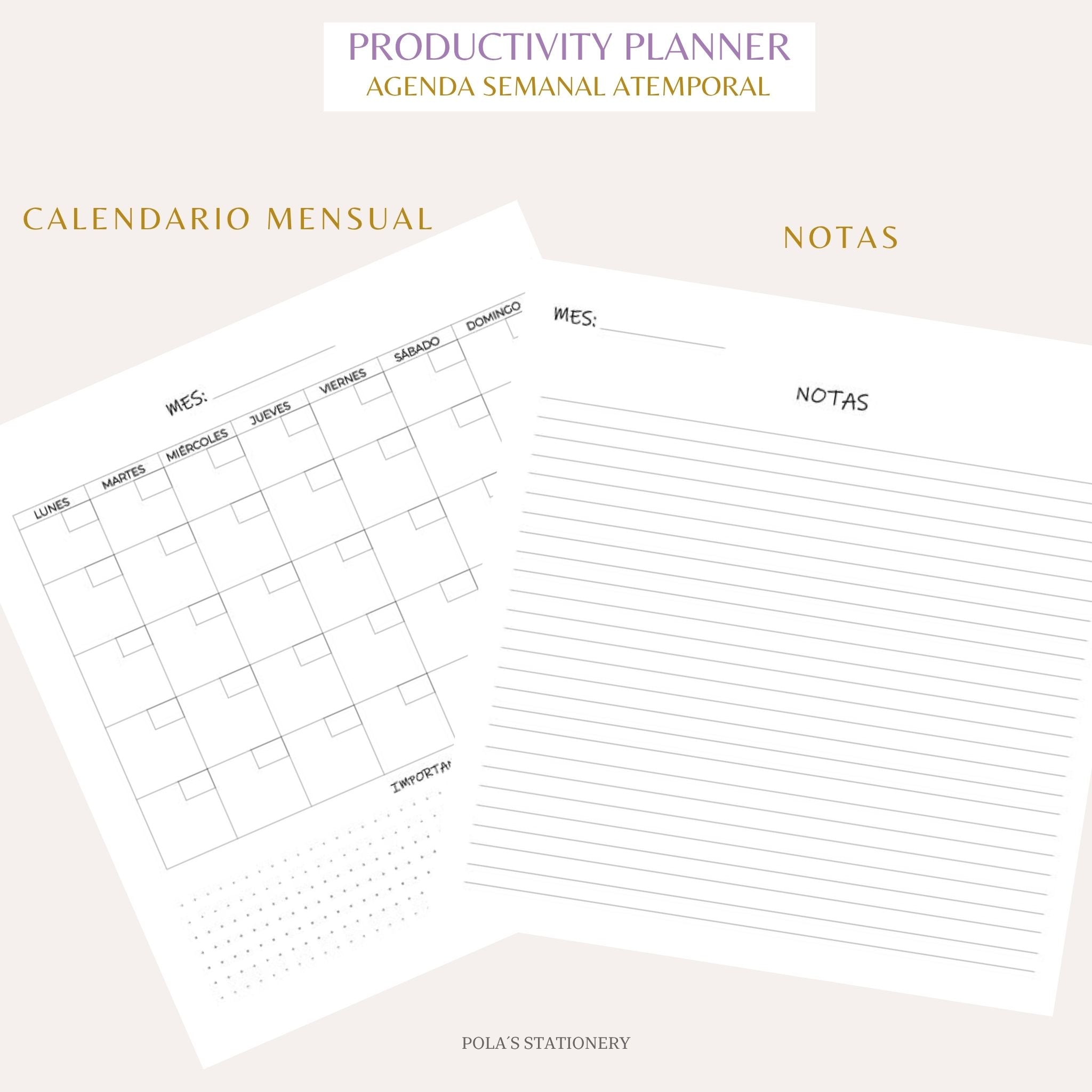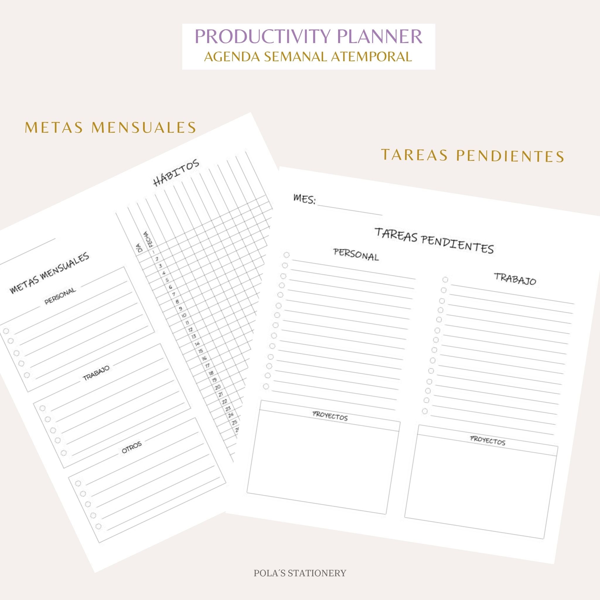 El Productivity Planner ✨se adapta a ti. Es sin fechas, puedes comenzar a usarlo en cualquier momento del año y también solo cuando lo necesites. A tu propio ritmo, sin fechas que te exijan, sin culpas si te detienes. Si dejas de usarlo, puedes retomarlo donde lo dejaste sin perder hojitas.